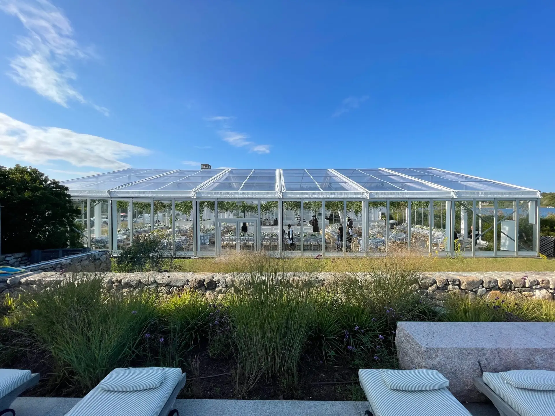 The clear glass offers a touch of sophistication, seamlessly integrating with any event theme while providing a stunning view of the surroundings.