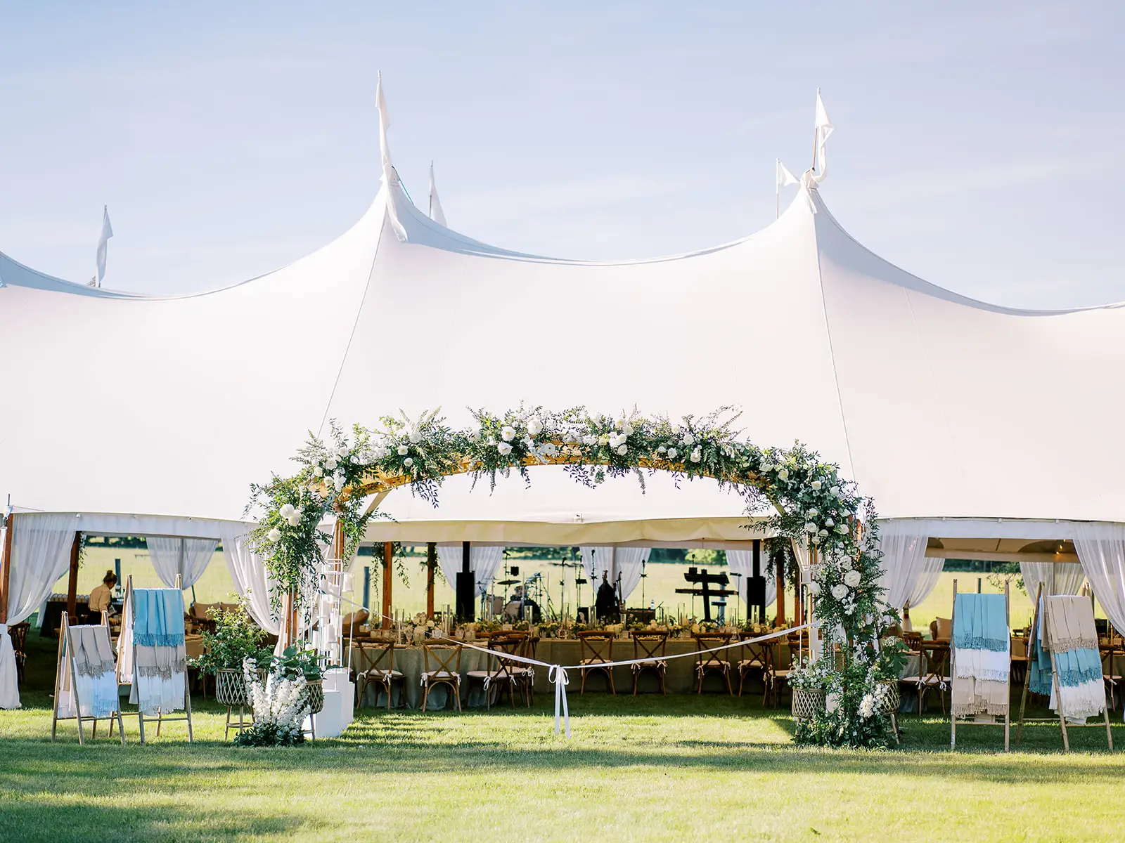 Genuine sailcloth arched canopy for an original, elegant event experience.