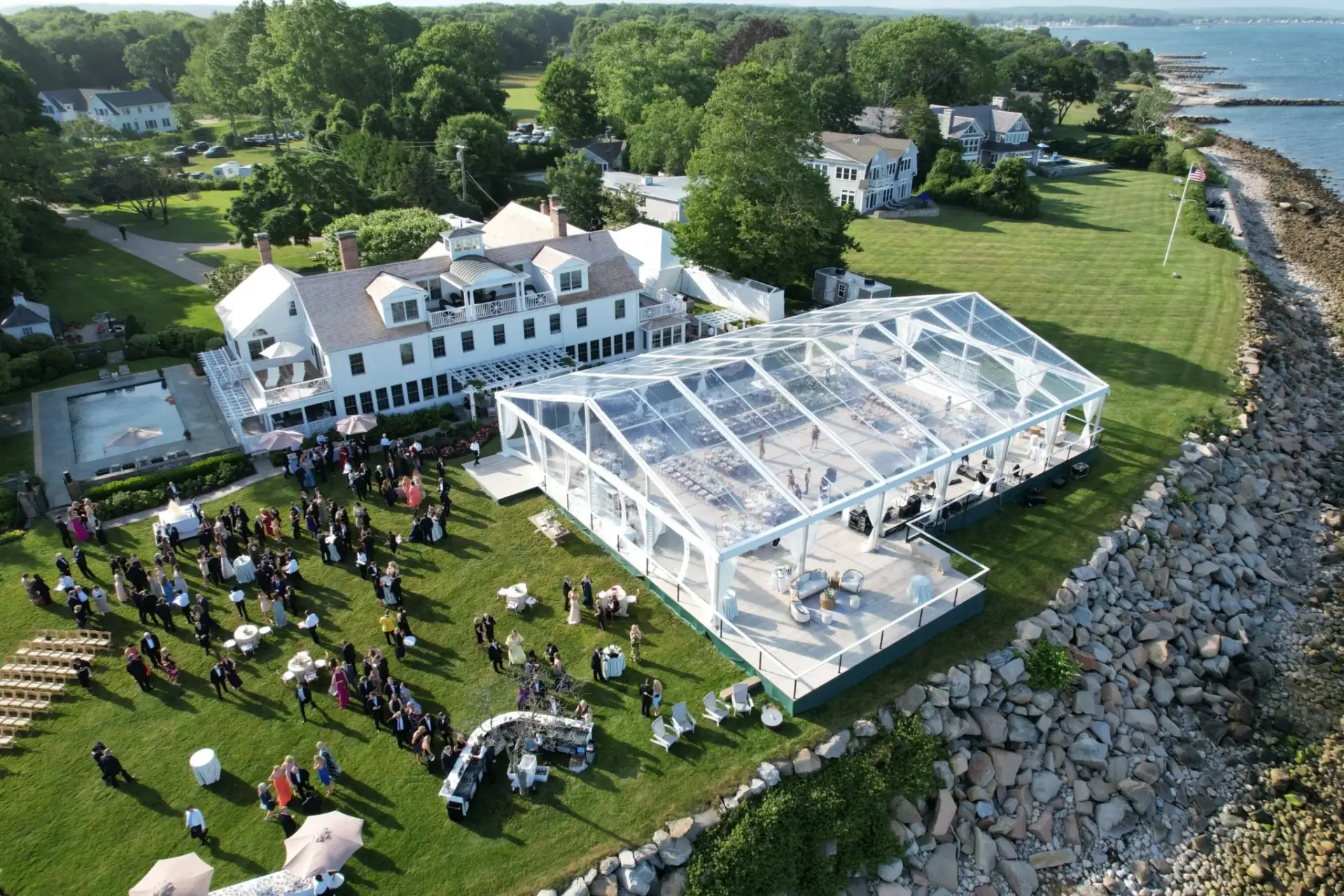 The adaptability of our Losberger tents can take any event vision and turn it into something spectacular. Their versatility can host a grand non-profit event, higher education reunion, or an elegant wedding reception with the right design. With a modular and sleek frame, our clearspan tents immerse beautifully into any event location, seamlessly integrating into the natural and architectural landscapes of Darien, CT.