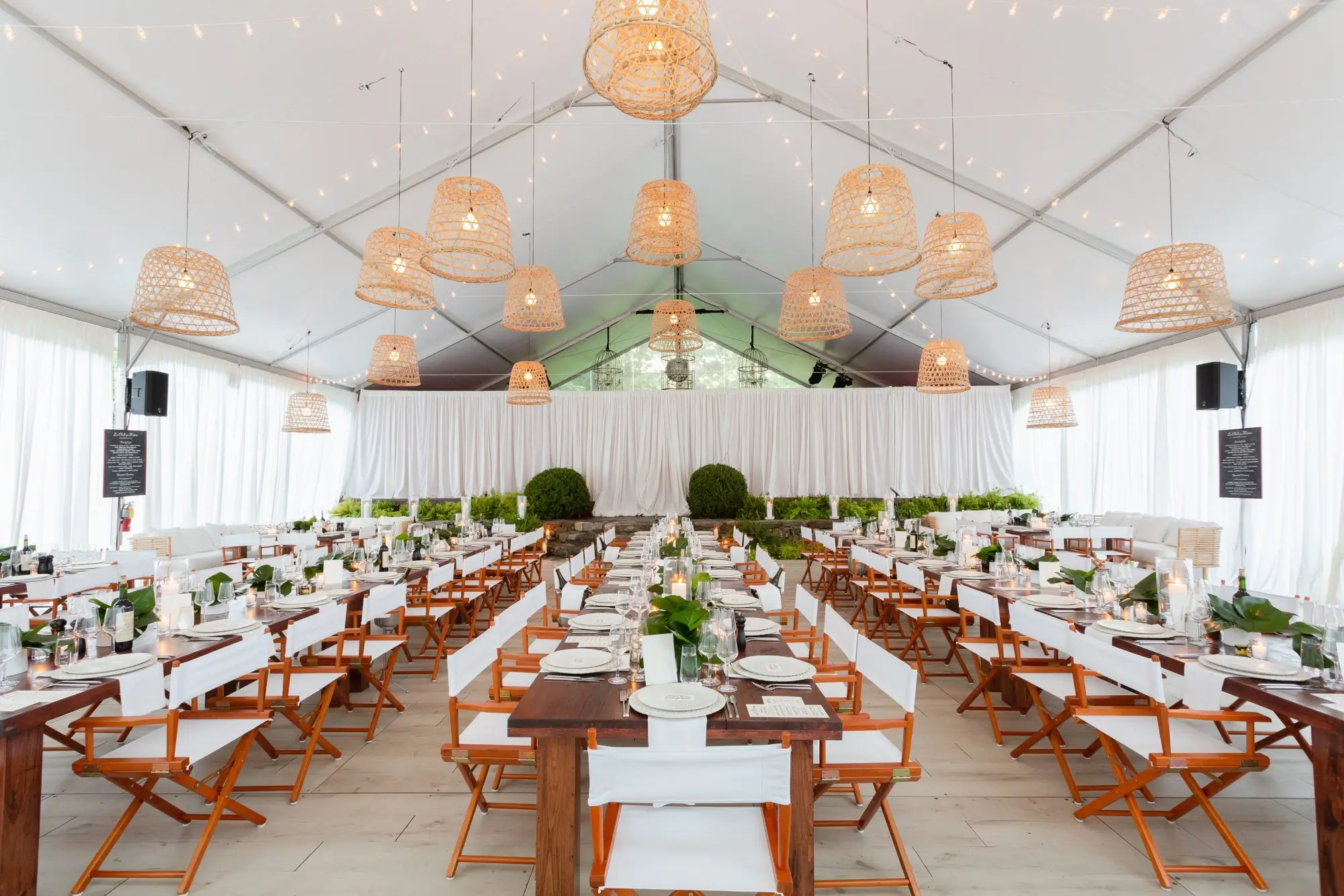 Without the need for interior poles, our frame tents are ideal for events with intricate designs and expansive floorplans. The fabric for our tents is intentionally ordered without scallop edges, offering a sleek and modern framework for any celebration.