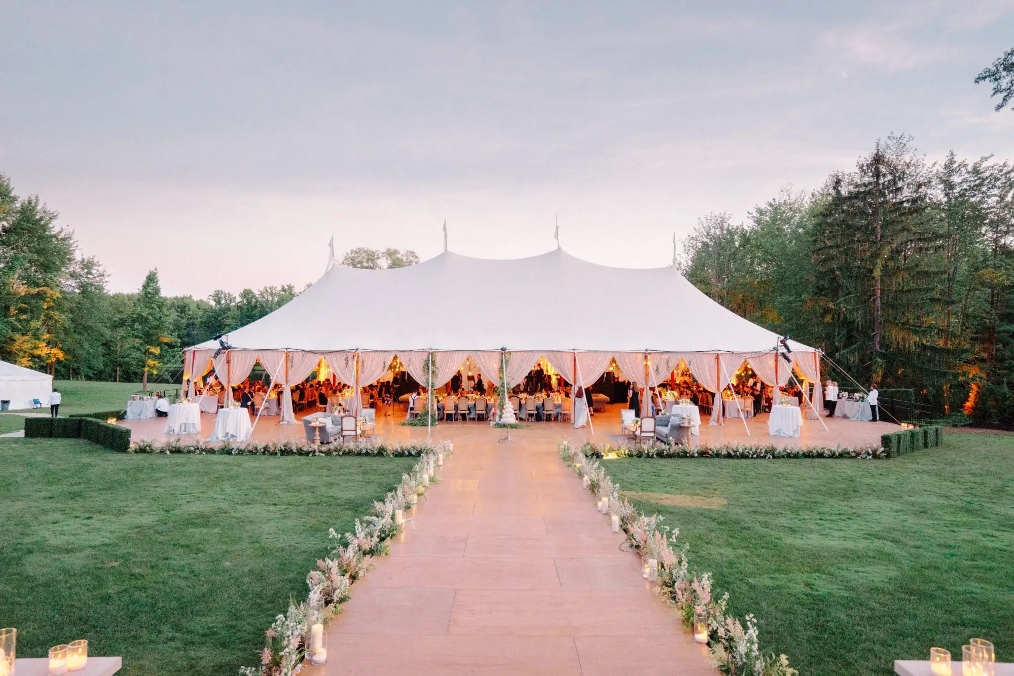 - Finishing Touches: If you’re looking to enhance your guests’ experience, our team is happy to recommend additional products to elevate your event — such as tent lights, generator rental for wedding, clear sidewalls, or our proprietary event flooring rental. We’re here to help make your Sperry Tent feel just as you envisioned for your celebration.