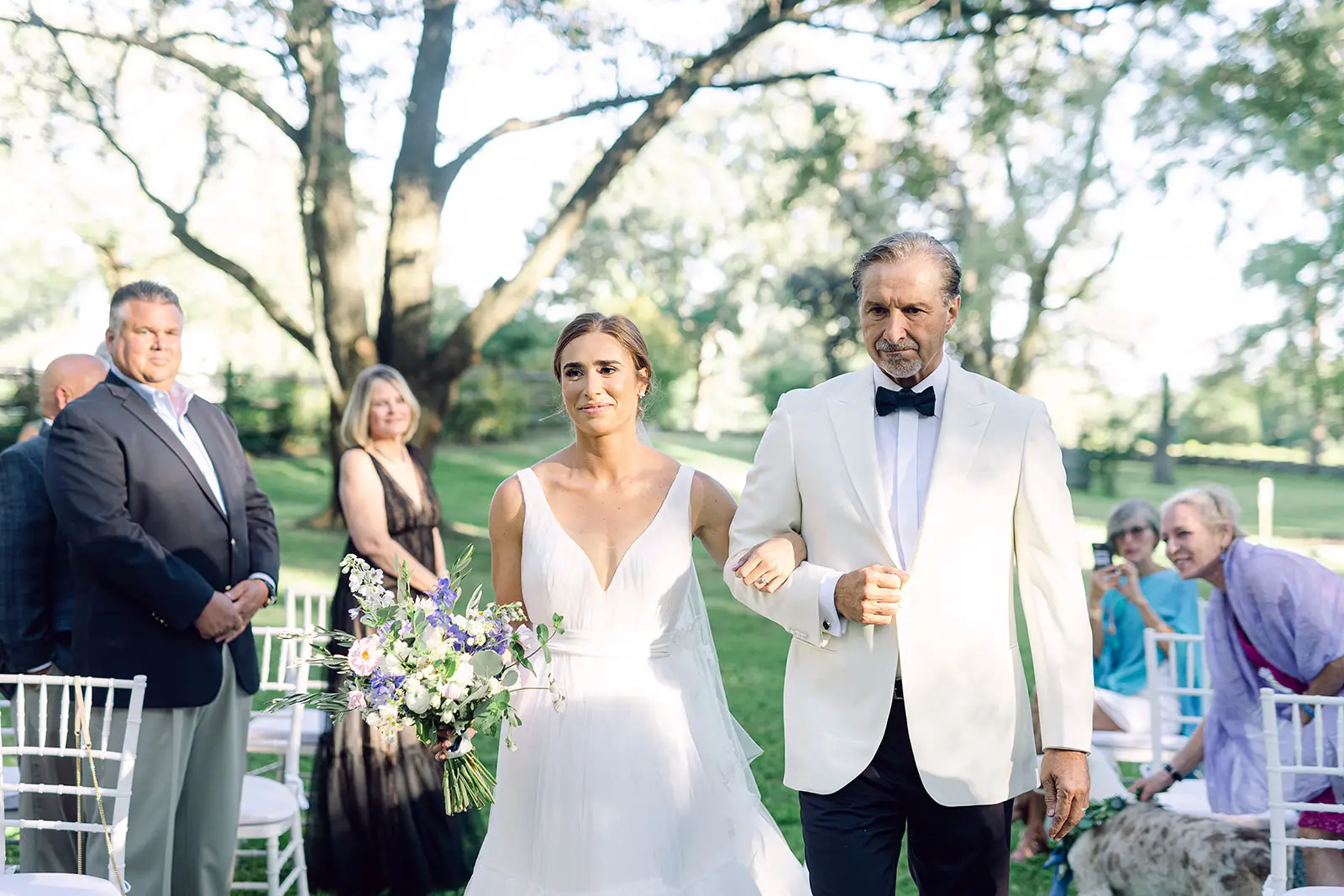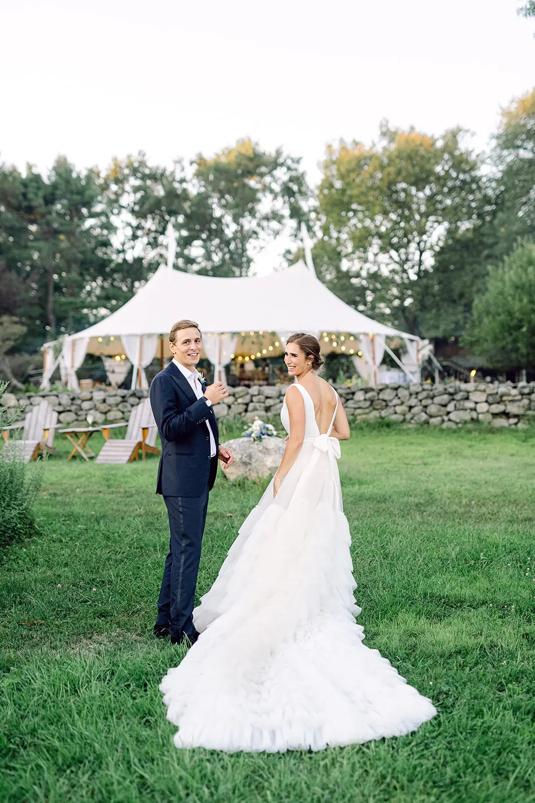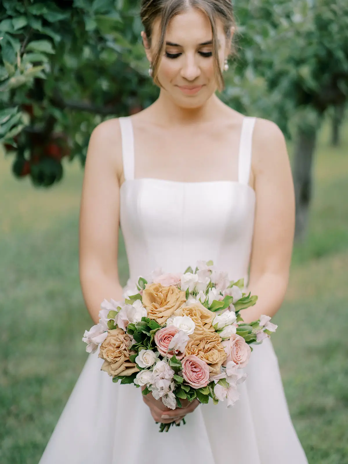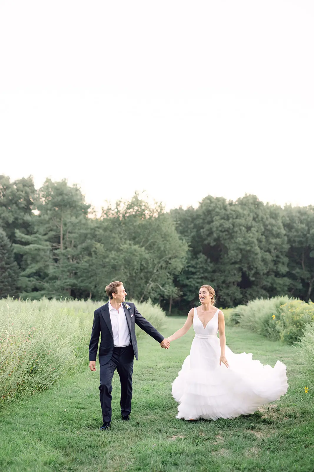 When it came to selecting the ideal setting to exchange vows, this couple drew inspiration from the natural beauty of Breeze Hill Farm, an apple orchard on the North Fork of Long Island. This destination holds a special place in their hearts, as Sarah’s family has a house on the North Fork and she has visited the area since childhood. It became a cherished spot for the couple throughout their relationship.