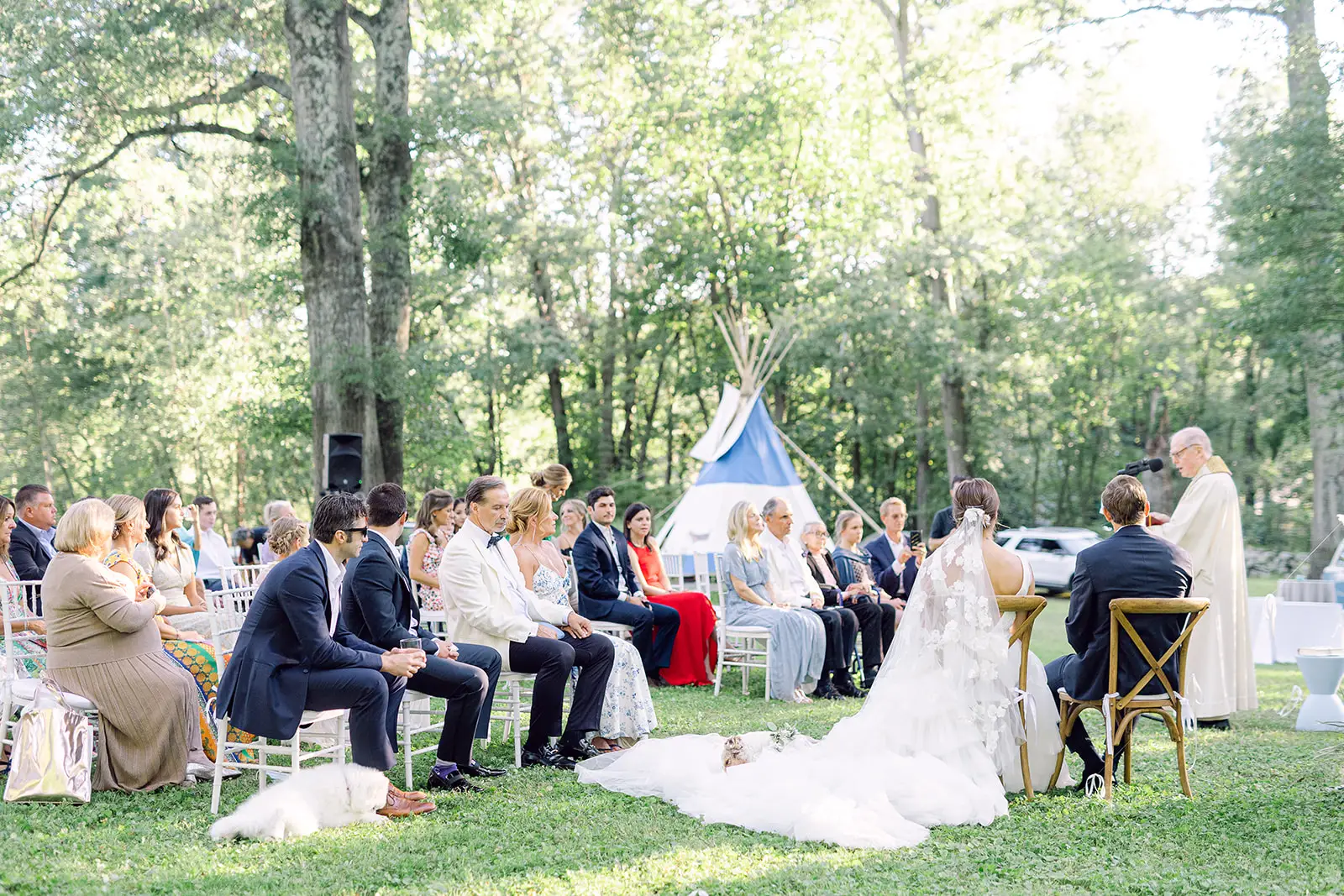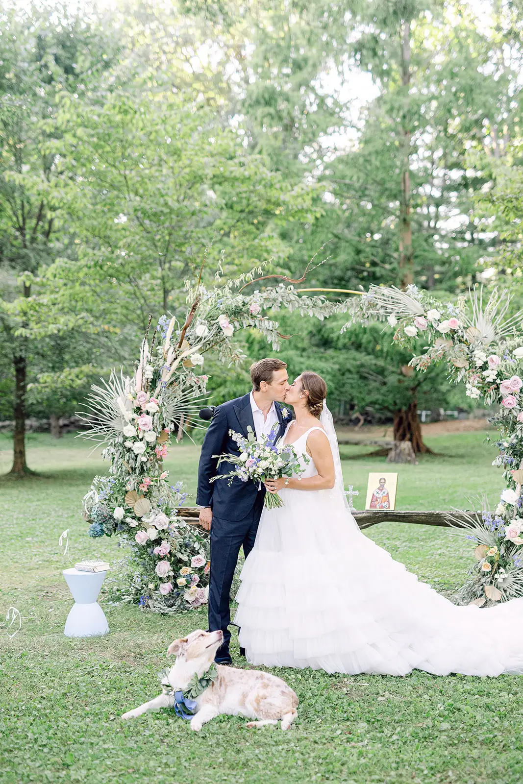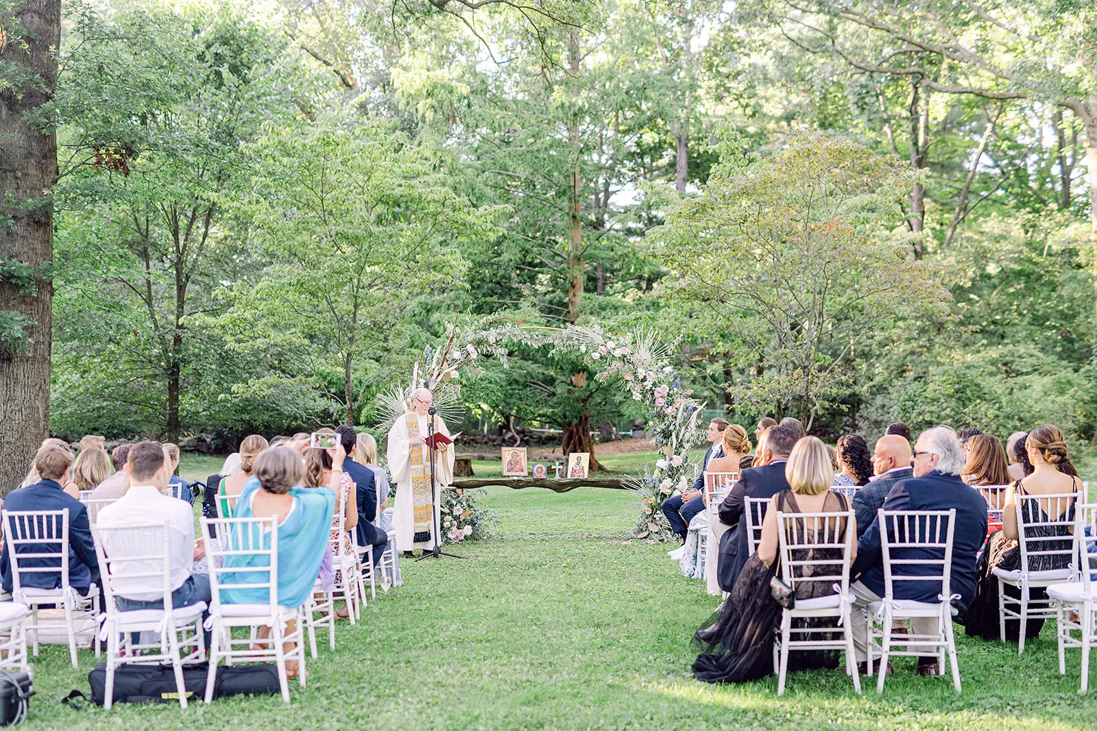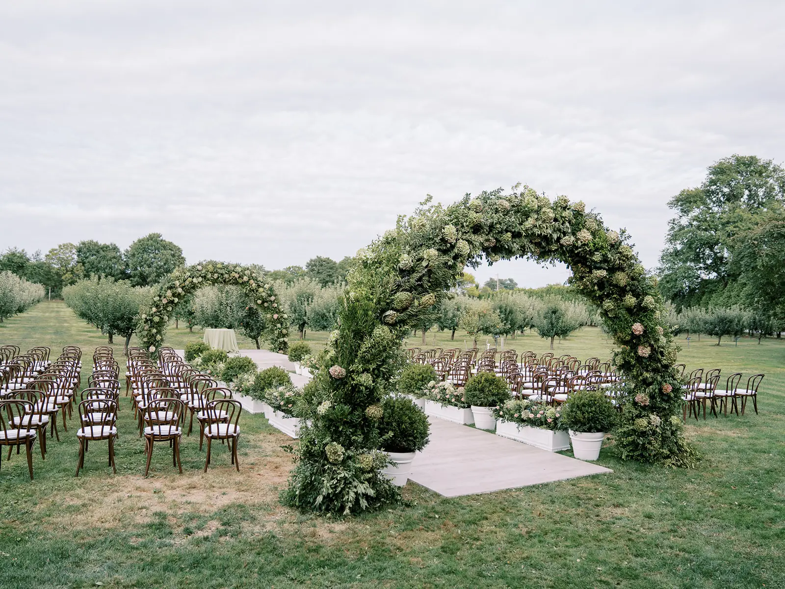 The ceremony space was set back in a lush, apple field with greenery and floral enriched archs at the beginning and end of the alter creating amazing textures that were perfect for framing the space beautifully.