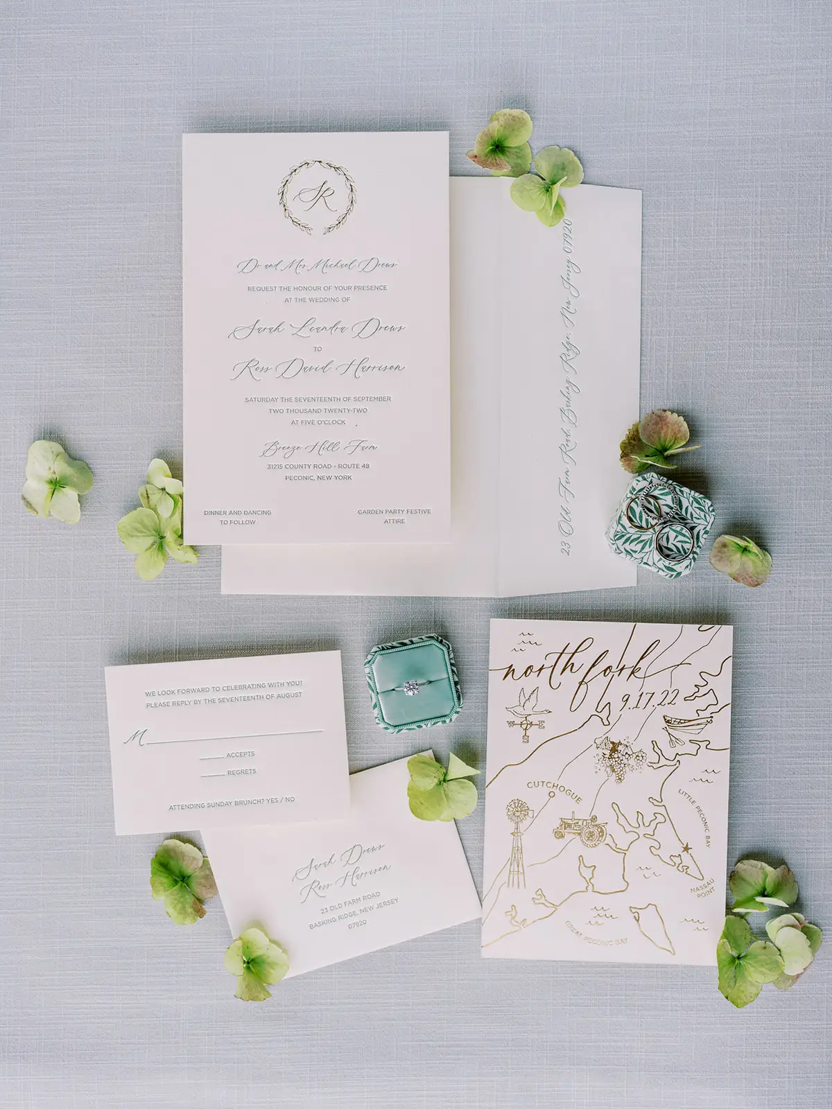 To share this connection with their guests, they included an illustrated map of the locale on their Save the Dates, created by Paper with Benefits, inviting everyone to discover and love the area as much as they do!