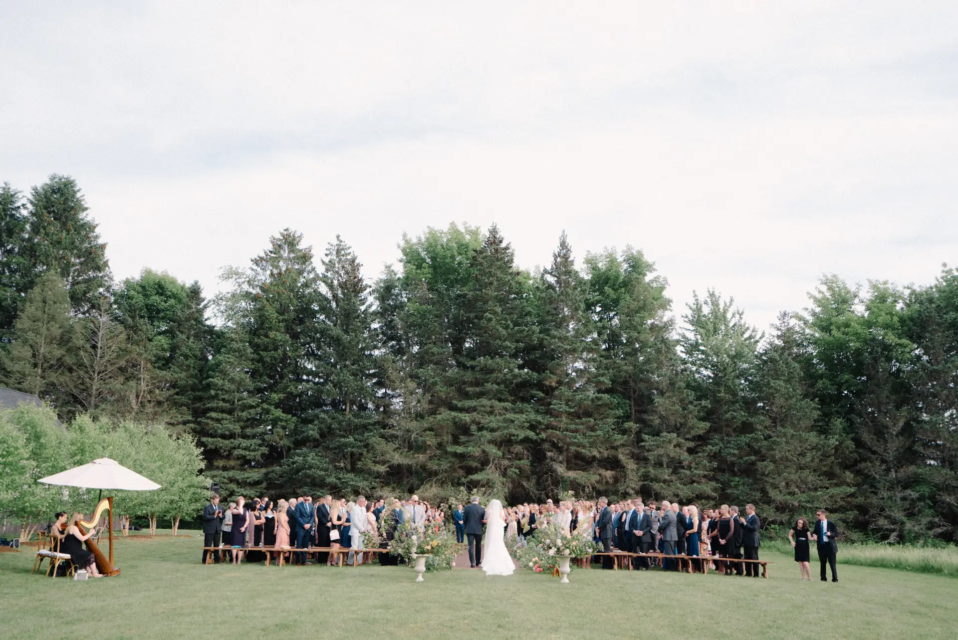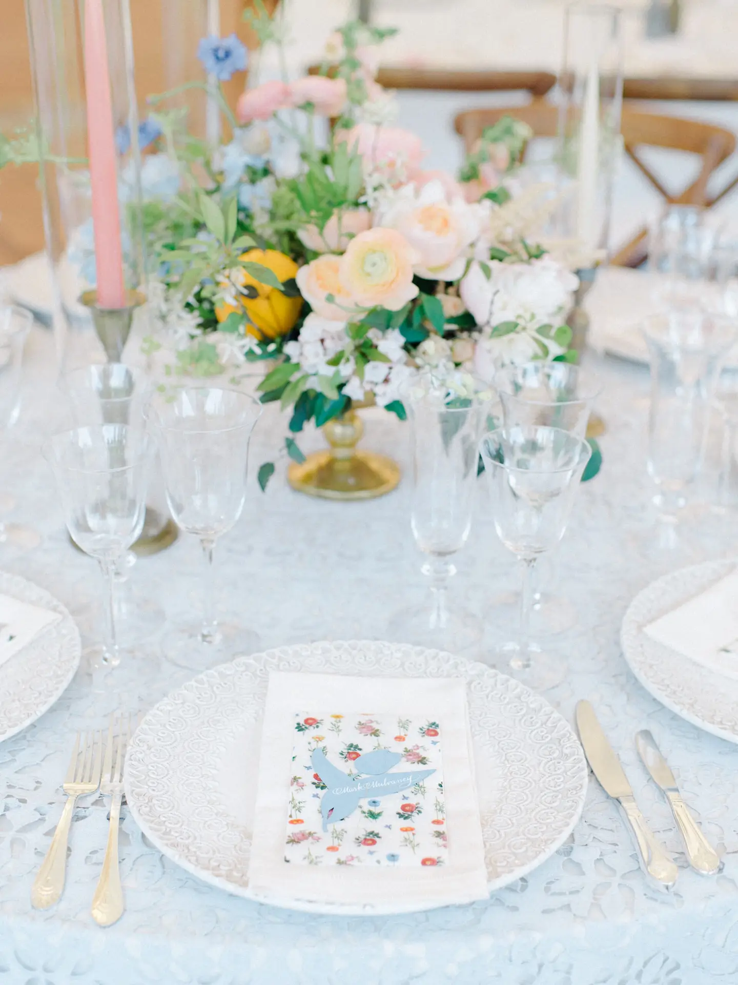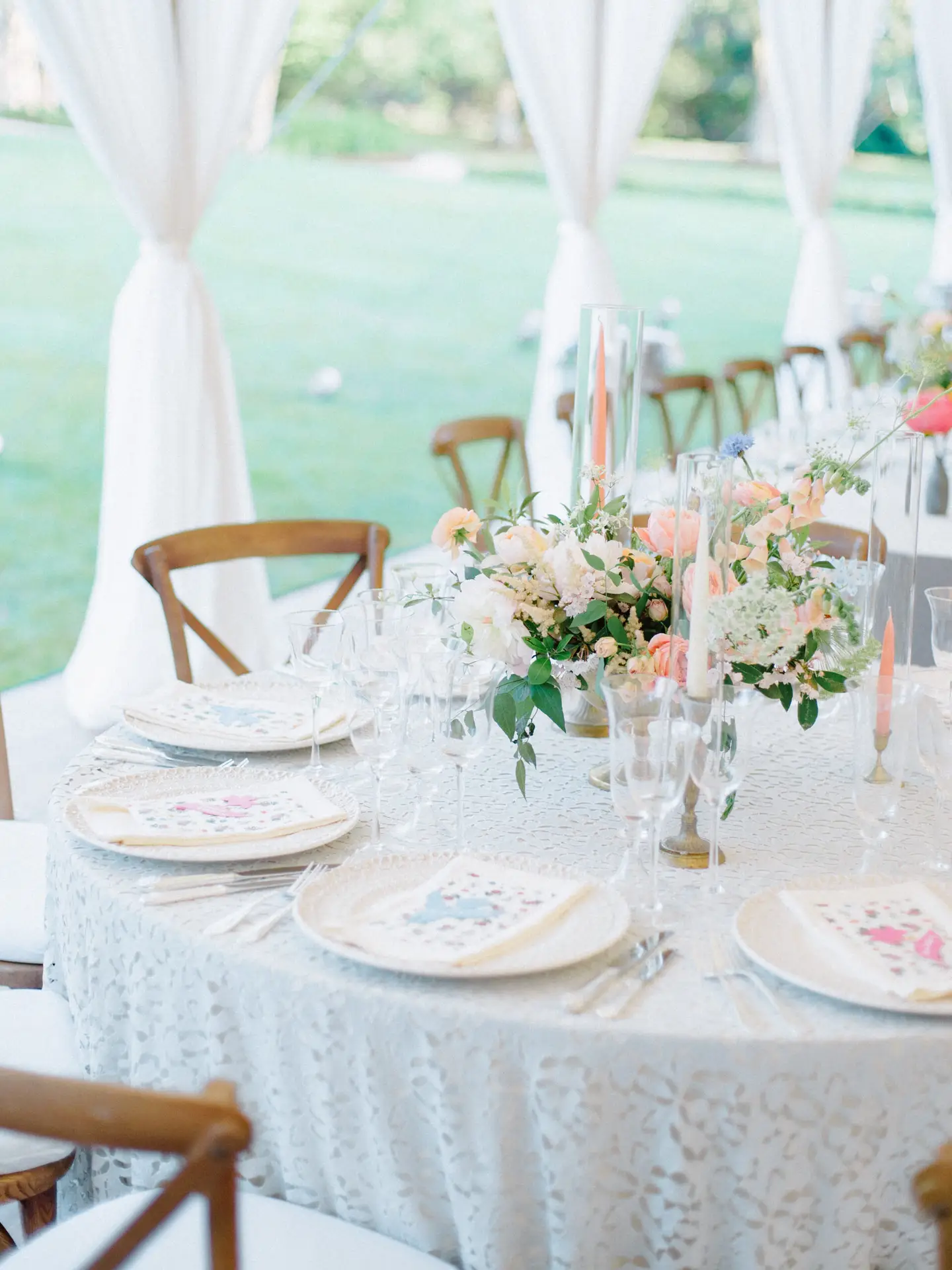 Ambient lighting from glass votives and hanging Edison bulbs make this celebration feel both intimate and enchanting under the iconic sailcloth canopy. It was a perfect blend of nature-inspired design and timeless sophistication!