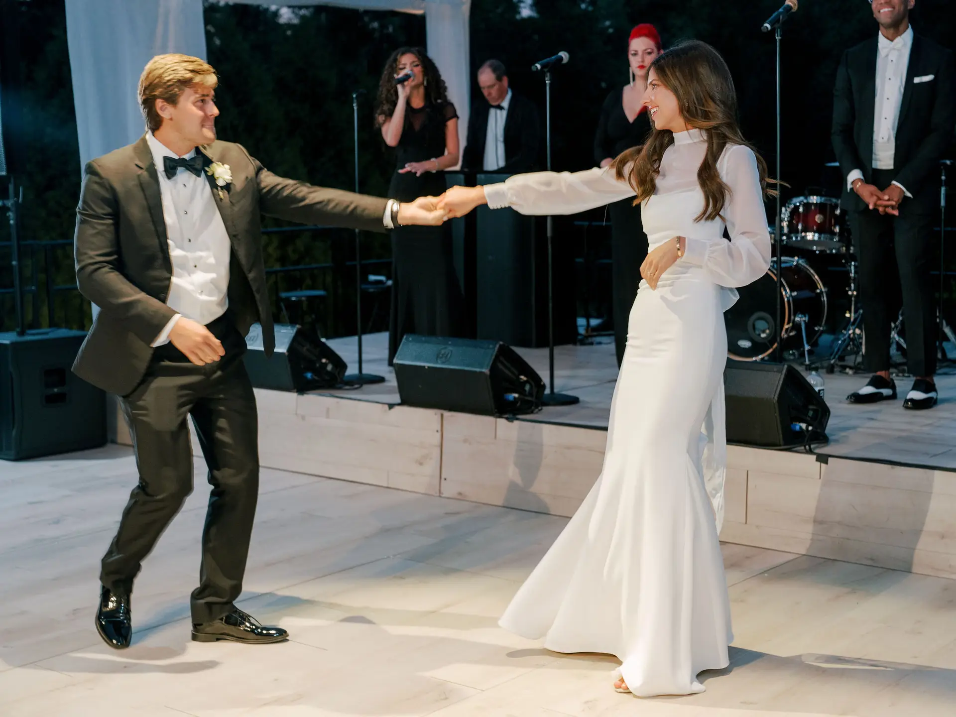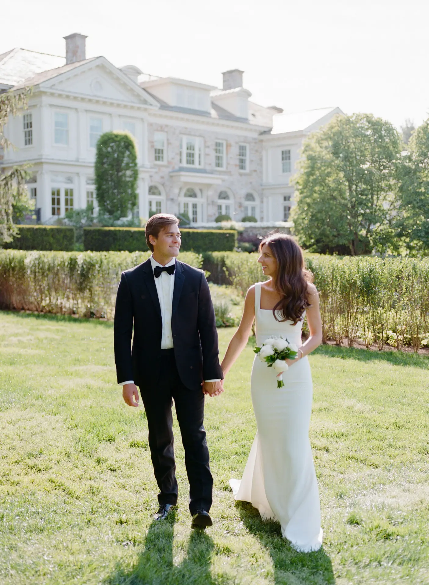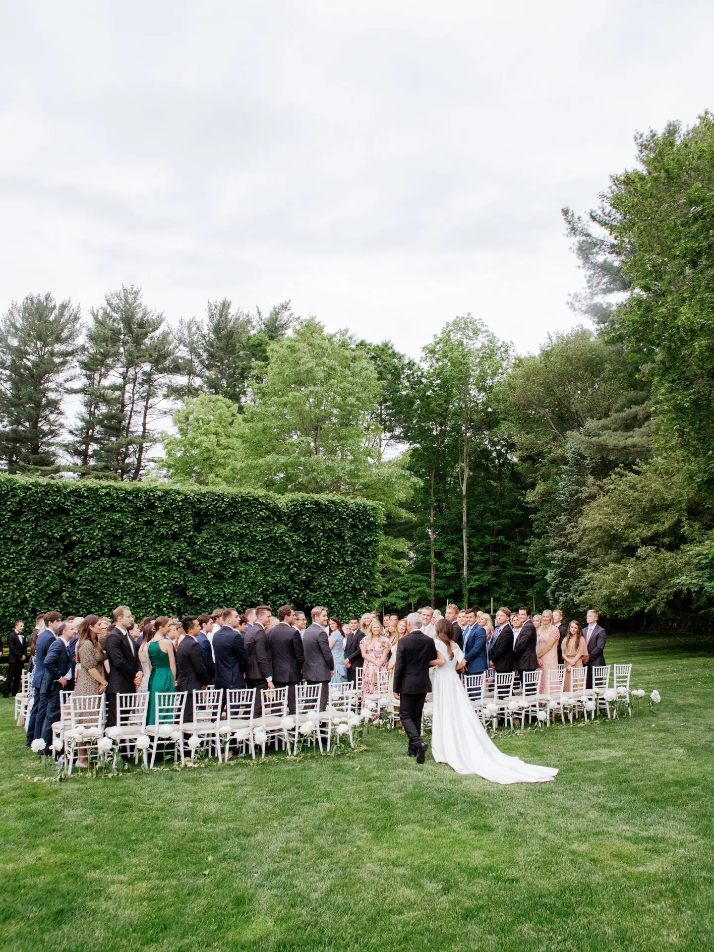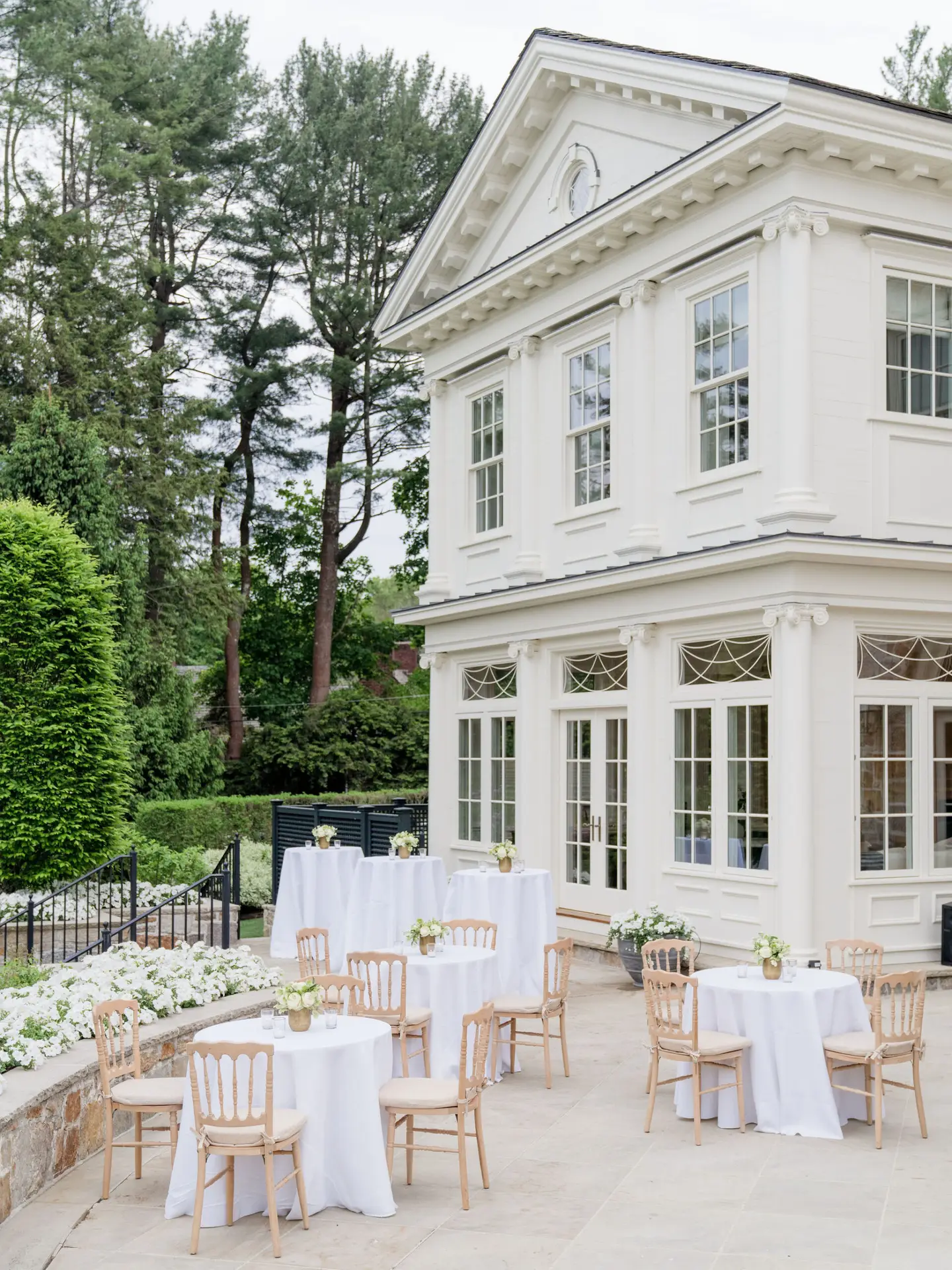 Thanks to the perfect spring weather, every aspect of this wedding took place outdoors, allowing for a simple yet impactful ceremony location and a cocktail hour hosted on the luxurious outdoor patio area.