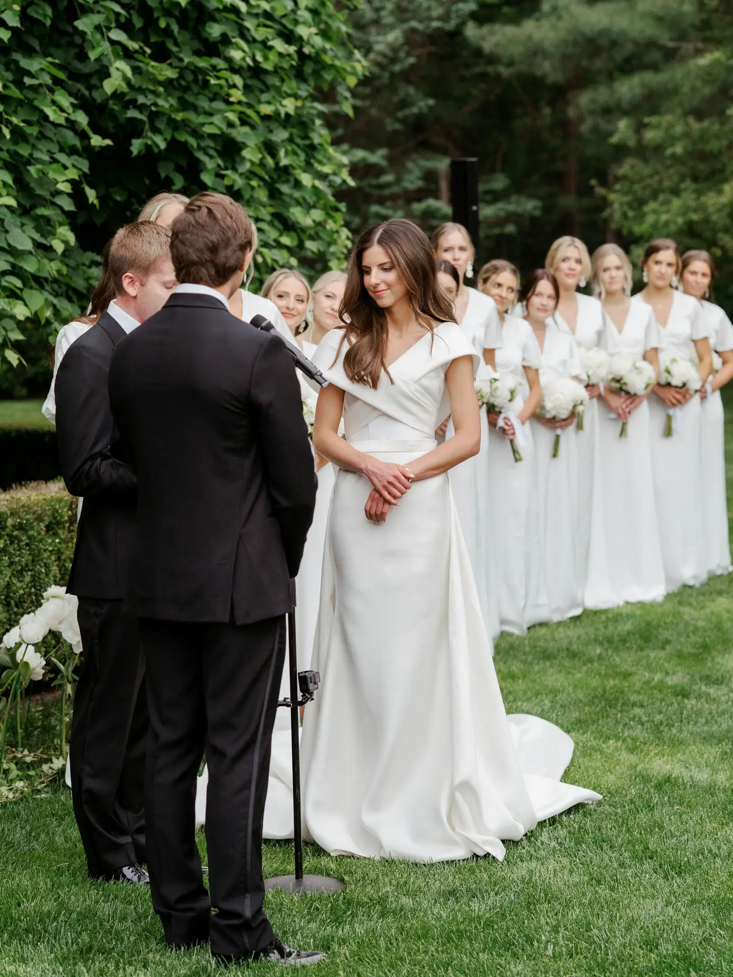 Experience backyard ‘I Dos’ like never before: a chic, modern, and sophisticated white wedding design staged at a private residence worthy of a magazine feature, with a stunning couple to complement the ambiance. With plenty of landscape to work with the ceremony, cocktail hour and reception were all a short walk from each other making the flow of the wedding simply smooth.