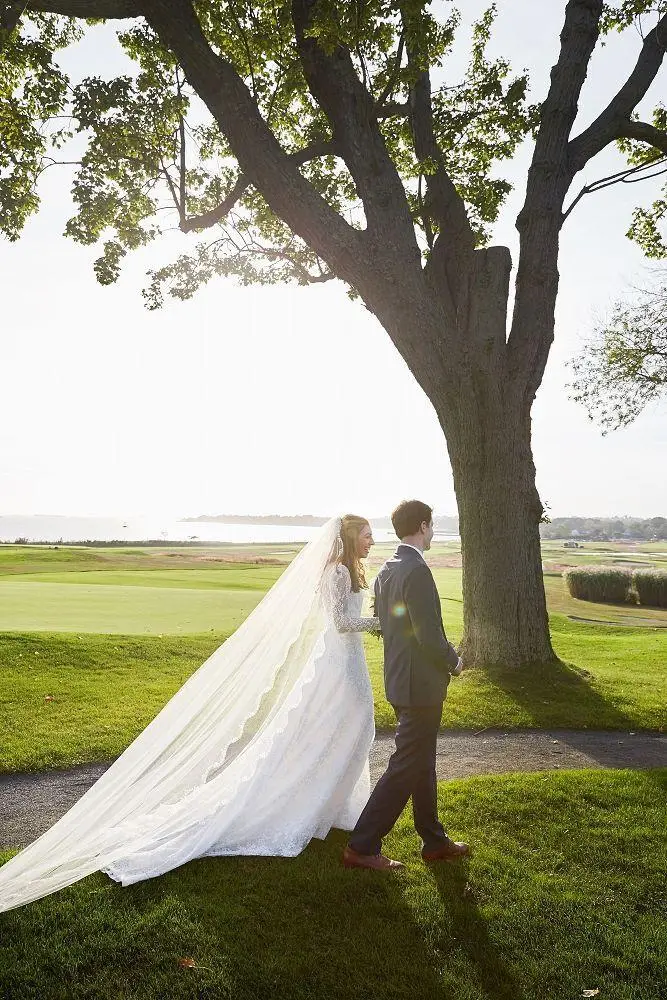 Louis cherished his childhood summers exploring Rhode Island, and his affection for the state resonated deeply with Katherine. They both regard Rhode Island as a “happy place” in their relationship. Katherine elaborates, “Choosing Rhode Island was a natural decision for us, and Ocean House was an obvious choice. It’s reminiscent of something out of a Wes Anderson film; a picturesque enclave by the sea.”