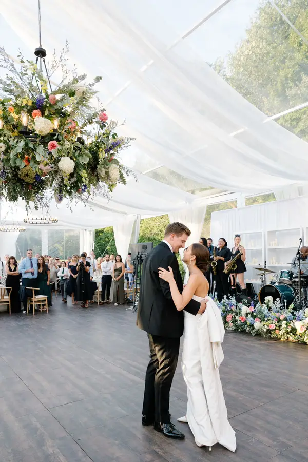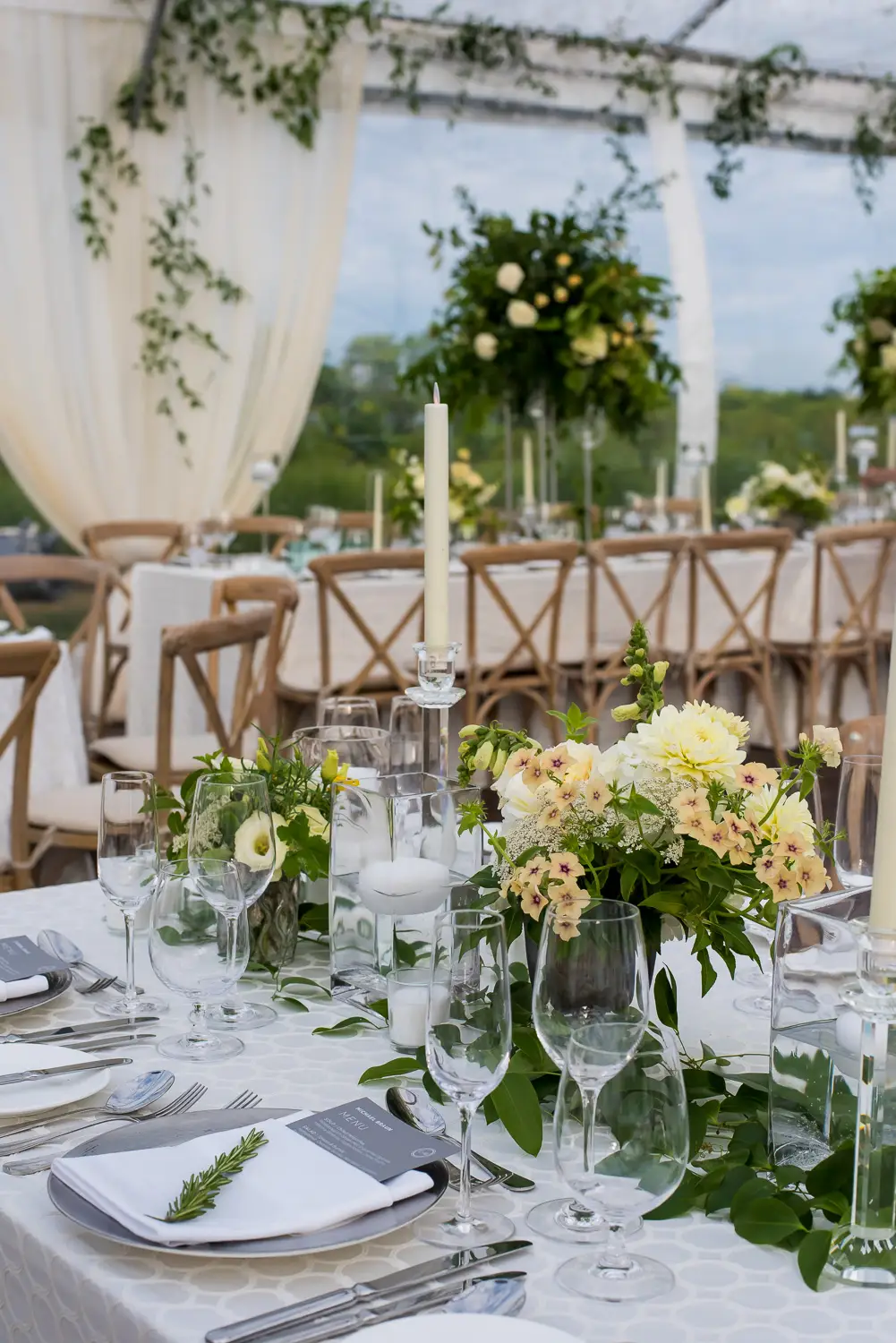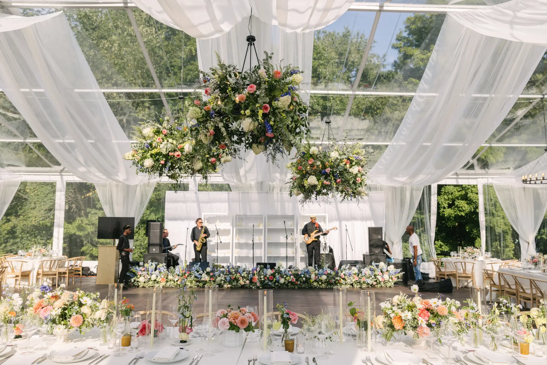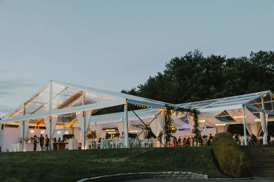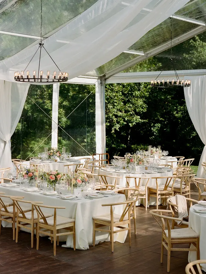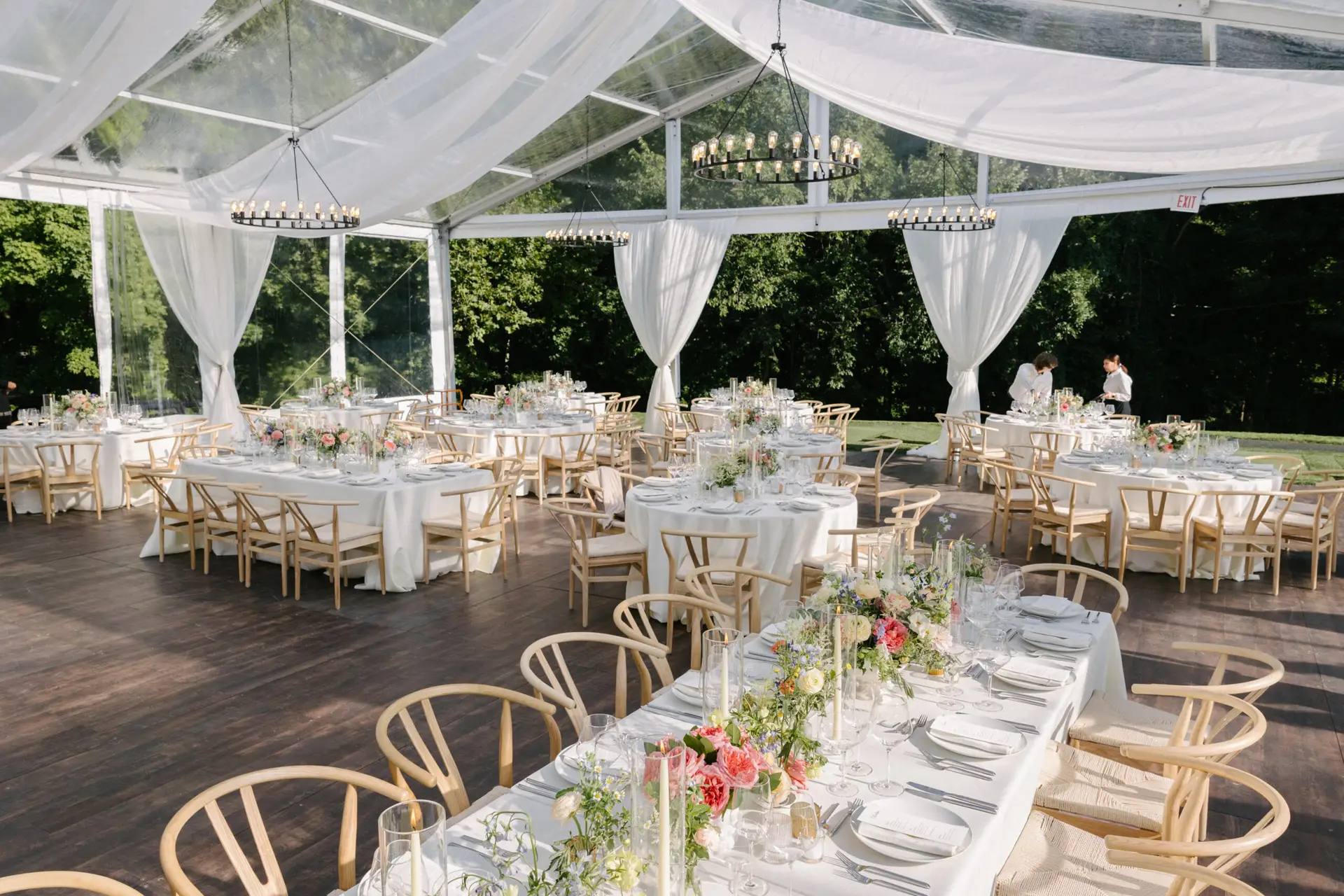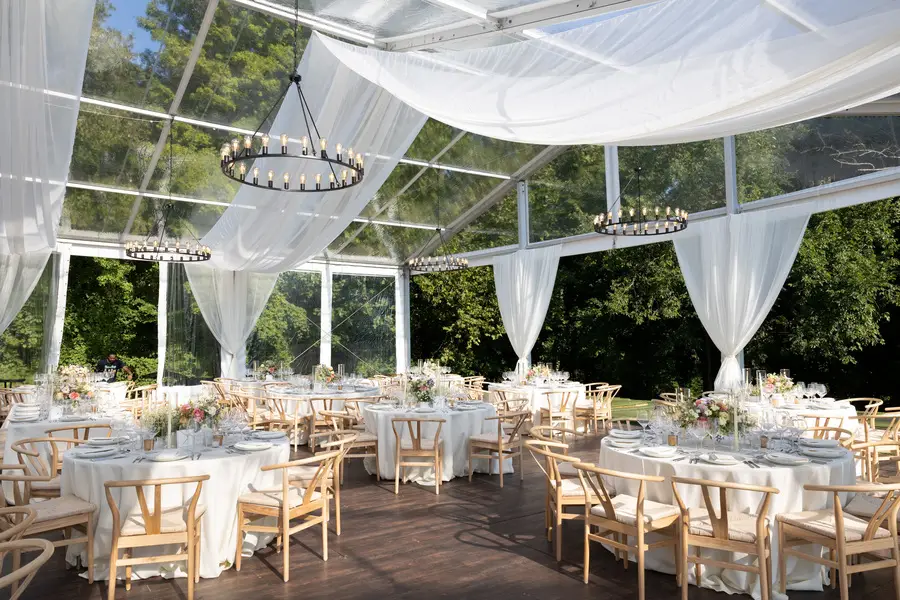 Another notable addition to the tent was the sheer white drapery provided by Vivid Event. This elegant touch contributed to a soft and refined ambiance, enhancing the visual impact of the space under the tent and adding to its overall allure.