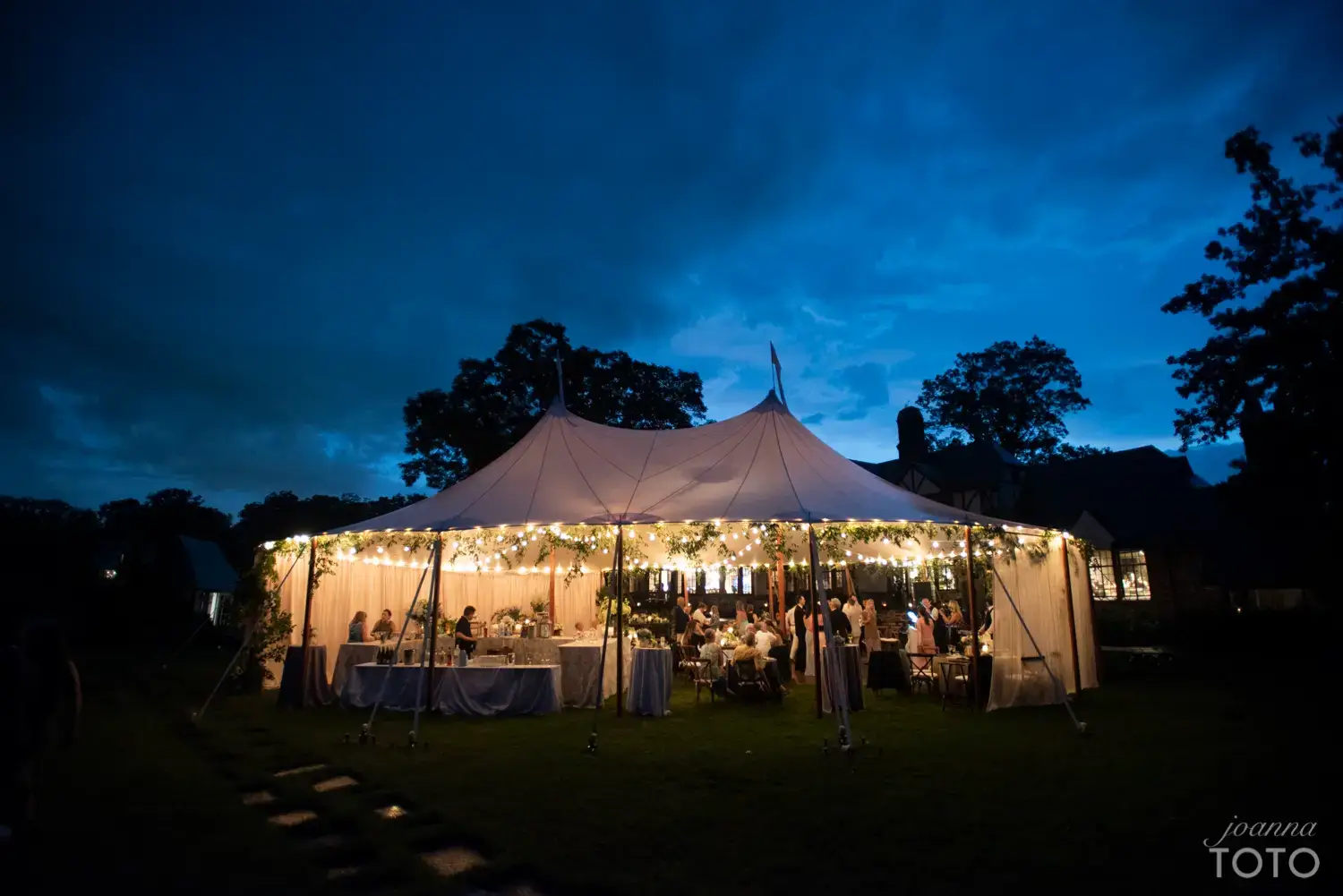- Type of tent lights (string lights, chandeliers, uplighting, etc.)